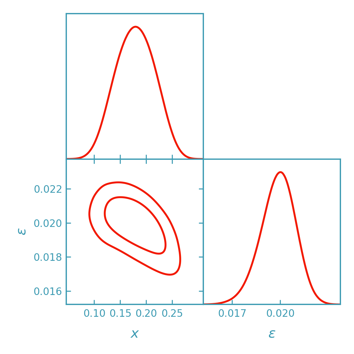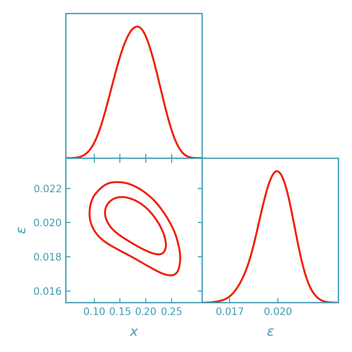 >>> # With priors: wide bounds + a correlated multivariate Gaussian prior
