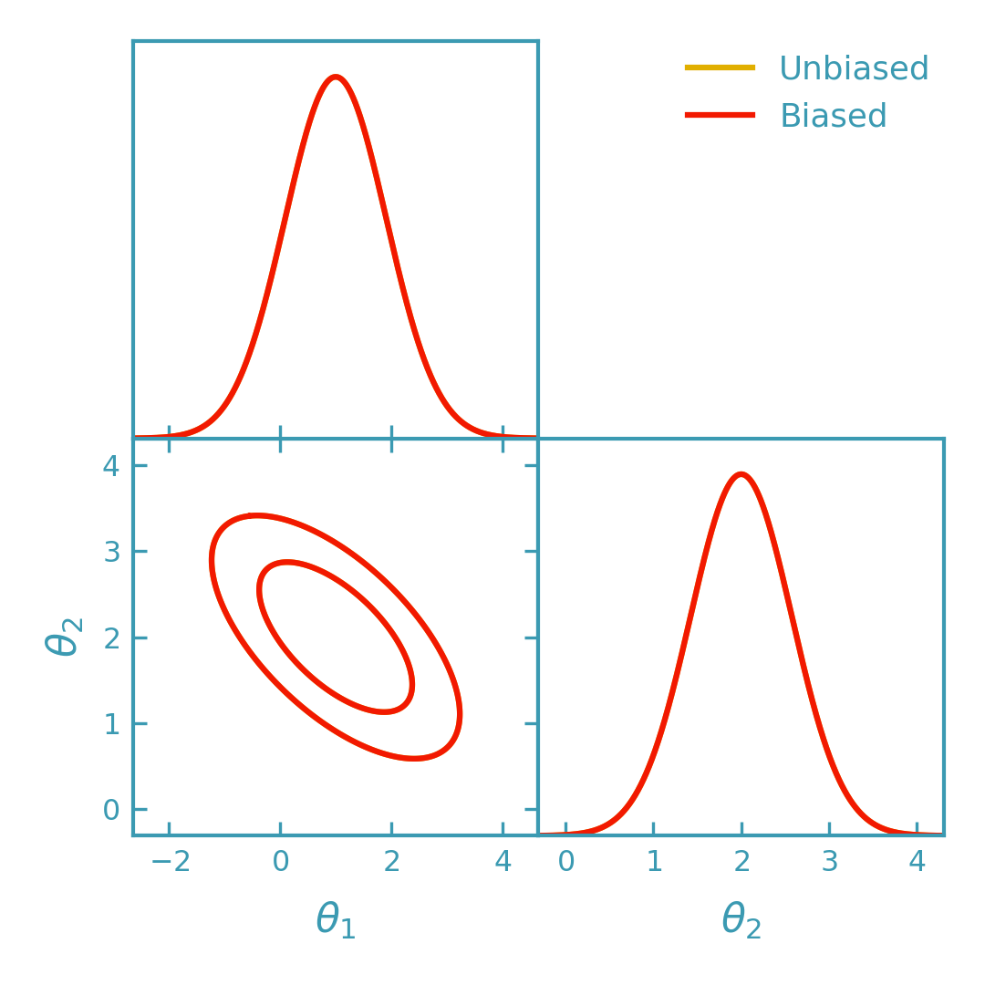 >>> # Plot biased and unbiased contours